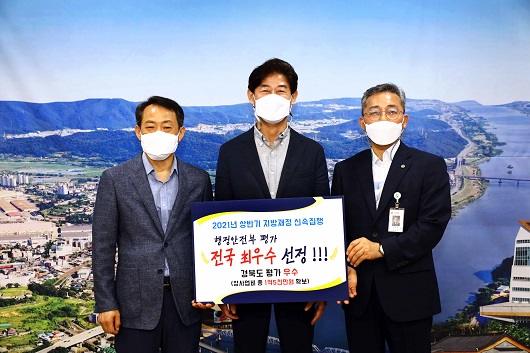 [칠곡=경북IT뉴스] 칠곡군이 행정안전부 주관 ‘2021년 상반기 지방재정 신속집행 추진 평가’에서 ‘전국 최우수 기관’으로 선정돼 5천 500만 원의 재정 인센티브를 확보했다.