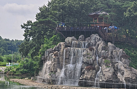 송정산 산책로는 23억 원을 들여 600여m의 산책로와 영강 경관을 조망할 수 있는 정자, 시원하게 무더위를 날려 줄 인공폭포, 야간 경관조명이 설치됐다. 인공폭포와 야간조명 가동 시간은 밤 10시까지다.