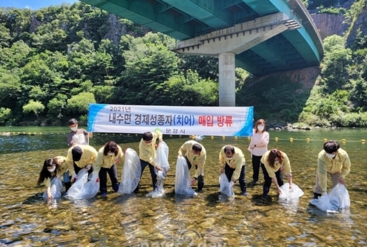 문경시는 내수면 생태계의 서식환경 변화와 무분별한 어획으로 감소하는 토속 어류 개체수를 늘리기 위해 치어를 방류했다.