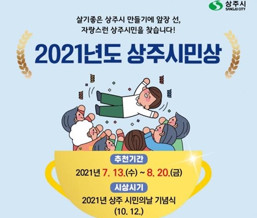 [상주=경북IT뉴스] 상주시가 ‘2021년도 상주시민상’ 수상 후보자를 20일까지 추천 받는다.