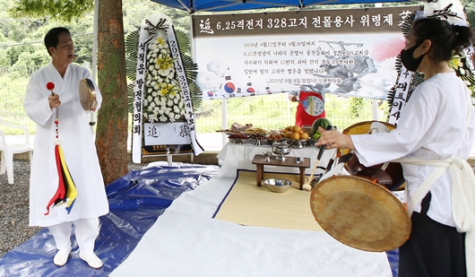 9일 칠곡군에 따르면 8일 칠곡군 석적읍 망정1리 인문학마을에서 '328고지 위령제'가 열렸다. 4회째인 이날 위령제는 경기민요 57호 전수자인 민진기 선생의 영혼을 달래는 공연을 시작으로 윤병규 망정1리 이장의 초헌례(첫 잔을 올리는 것), 배석운 칠곡향교 회장의 독축(축문을 읽는 것), 이 지역 정희용 국회의원의 아헌례(두 번째 잔을 올리는 것) 순으로 진행됐다.