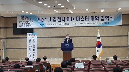 [김천=경북IT뉴스] 김천시가 경북도민 대학 김천캠퍼스로 운영되는 ‘2021년 김천시 60+마스터 대학 입학식’을 열었다.