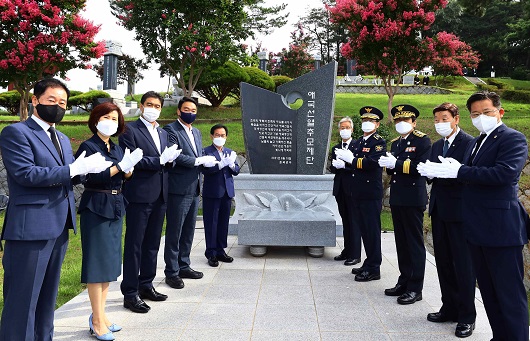 이날 행사는 방역지침을 준수한 가운데 국민의례를 시작으로 기념비제막, 추모제단 헌화, 인사말씀, 만세삼창 순으로 진행됐다.