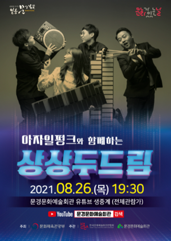 [문경=경북IT뉴스] 문경시가 8월 문화가 있는 날 사업으로 오는 26일 오후 7시 30분에 유튜브 채널 ‘문경문화예술회관’에서 ‘아자일펑크와 함께하는 상상두드림’ 공연을 실시간 생중계한다.