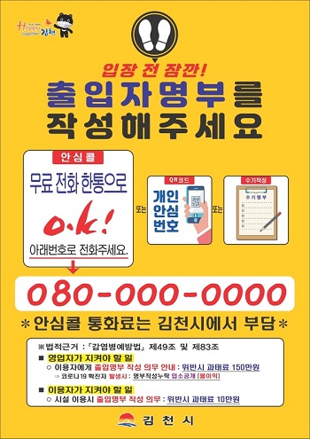 [김천=경북IT뉴스] 김천시는 '080 전화기반 출입명부 시스템'을 도입해 9월부터 시행한다고 27일 밝혔다.