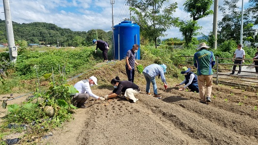 [구미=경북IT뉴스] 한국농어촌공사 구미·김천지사(지사장 권택한)는 지난 15일 ESG경영 추진계획에 따라 3개 지역단체(공사, 경북자연사랑연합, 지역주민)가 합동으로 인노천 생태보전형 주민텃밭 농작물(땅콩,고구마,고추 등) 수확과 배추심기, 잡풀베기 등 자연사랑‧물사랑 ‘Power-Up봉사단’ 활동을 통해 환경보전 행사를 실시했다.
