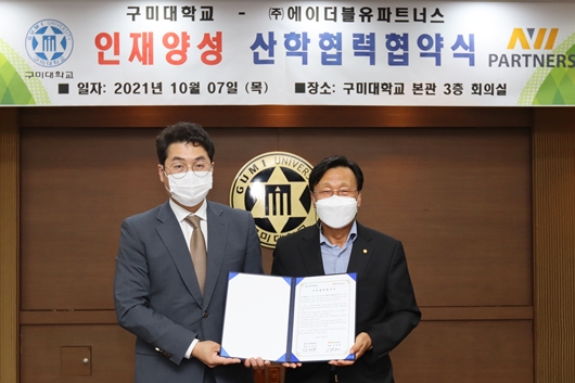 [구미=경북IT뉴스] 구미대학교(총장 정창주)는 지난 7일 ㈜에이더블유파트너스(대표 양창희)와 전문인력 양성 및 취업지원에 관한 고용예약 협약(MOU)을 체결했다고 밝혔다.