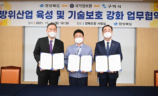 [경북=경북IT뉴스] 경북도는 지난 1일 도청에서 국정원, 구미시와 방위산업 기술보호 강화를 위한 업무협약(MOU)을 체결했다.