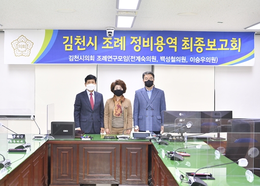 한편 김천시의회 조례연구모임은 연구단체 대표를 맡은 전계숙 의원을 비롯해 백성철, 이승우 의원으로 구성돼 있으며 향후 과제로써 자치법규의 법체계 정확성을 상시로 연구할 수 있는 선진 자치 법제 시스템에 대해 활동을 할 계획이다.