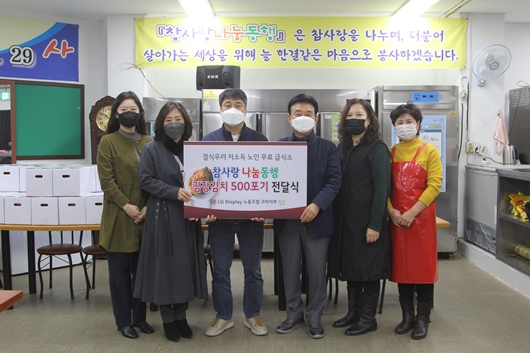 [구미=경북IT뉴스] LG디스플레이 노동조합 구미지부(지부장 채근욱)는 지난 10일 구미의 저소득 노인 무료급식소인 '참사랑 나눔동행'에 사랑나눔 김장김치 500포기를 기부했다.