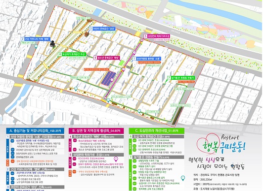 금오시장 일원 도시재생 뉴딜사업은 중심시가지형으로 약 25만㎡를 도시재생활성화지역에 ▲중심기능 및 커뮤니티 강화를 위한 ‘주민커뮤니티센터, 어린이·청소년·노인 거점시설’ ▲상권 및 지역경제 활성화를 위한 ‘상업문화특화가로 조성’ ▲도심인프라 개선을 위한 ‘도심여가 휴게공간 조성, 생활 밀착형 스마트기술 도입’ 사업을 단계별로 추진해 지역민의 생활환경을 개선하고 전통시장과 소규모 상가들의 상권 활성화에 기여할 것으로 기대하고 있다.