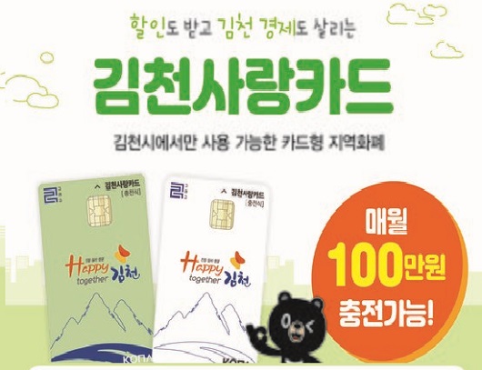 김천사랑카드는 4만 5500매 이상이 등록돼 사용 중이다.