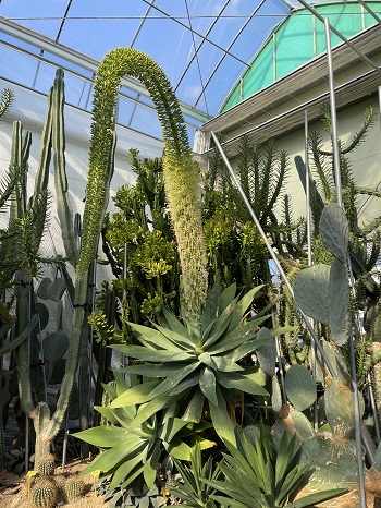 구미시농업기술센터 원예식물관의 용설란은 아랫부분부터 개화가 진행돼 3분의 1정도 개화한 상태이며 만개까지 30일 정도 걸린다.