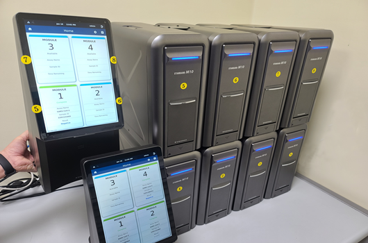 M10은 유전자(ORF1ab, E gene) 동시 검출 가능, 카트리지 내 단독검사가 진행돼 교차오염 위험 감소, 5000개의 결과 저장 가능, 사용량에 따른 모듈 확장성이 있어 기존 PCR 사용이 어려웠던 공간에도 세팅 가능한 장점이 있다.