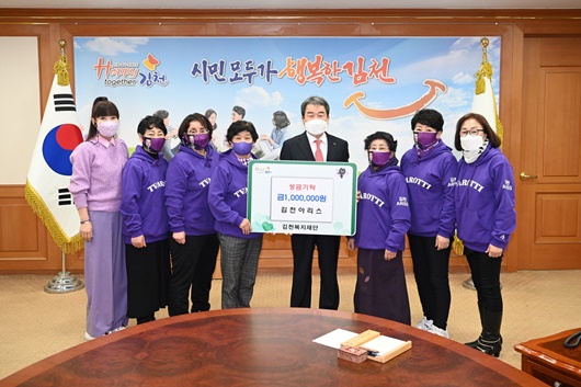 김충섭 김천시장은 “김천아리스는 평소에도 선한 영향력으로 지역사회에 많은 봉사 활동을 하고 계시는데 오늘 성금까지 기탁해 주신 데에 깊은 감사를 드린다”고 했다.