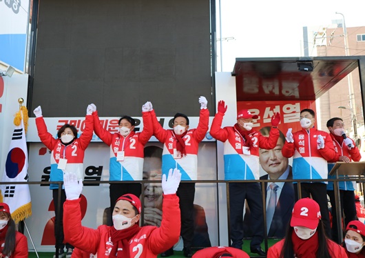 10시에는 죽도시장 수협위판장 앞에서 도당 유세차량을 통해 생중계되는 윤석열후보의 중앙출정식 첫 연설을 지지자들과 함께 시청을 하고 11시에는 오천시장으로 이동해 장날 거리유세를 했다.