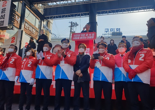 한편, 이번 윤석열 후보의 구미 유세에는 김영식 의원과 구자근 의원, 홍문종·김정재·김석기·박형수·윤두현·김형동 의원 등이 함께 지원했으며, 경찰 추산 5천명이 넘는 구미시민이 모였다.