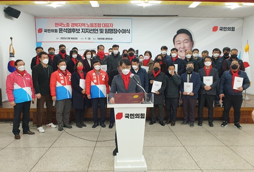 지난 15일과 17일 한국노총 산하 부산·양산지역 노조와 한국노총 대구지역본부에서 윤석열 후보에 대한 지지선언을 밝힌데 이어 18일, 한국노총 경북지역 노동조합 대표자도 윤석열 국민의힘 대통령후보를 지지하고 나섰다.