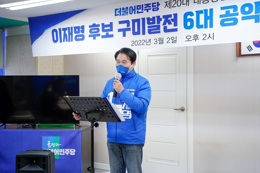 둘째, 구미 국가산단의 스마트 재구조화 지원입니다. 구미의 대통령 공약 6개 중 4개가 국가산업단지와 관련되어 있는데, 국가산단의 스마트 재구조화, 신공항 경제권 배후단지 조성, 이차전지 및 소재산업 허브 구축, 5산단의 경제자유구역 지정 등입니다. 현재 구미시는 정부지원을 받아 2023년을 목표로 노후된 국가산단을 미래형 혁신 산업단지로 조성하는 스마트그린산단 사업을 추진하고 있습니다만, 야심찬 추진과는 달리 디지털·그린산단, 스마트 제조혁신산단, 고부가가치화산단 등의 프로젝트는 속도가 더디게 진행되고 있다는 비판에 직면해있습니다. 스마트그린산단 조성사업은 마침 국가산단 관련 4개의 대통령 공약이 반영된 만큼 新마스터플랜을 수립하여 성과 있게 추진할 필요가 있다고 생각합니다. 이재명 후보는 구미 국가산업단지는 구미를 넘어 국가의 산업 원동력이기 때문에 노후화·슬럼화되어 있는 산업단지를 스마트 재구조화하여, 미래 산업의 전초기지로 조성하겠다고 밝혔습니다.