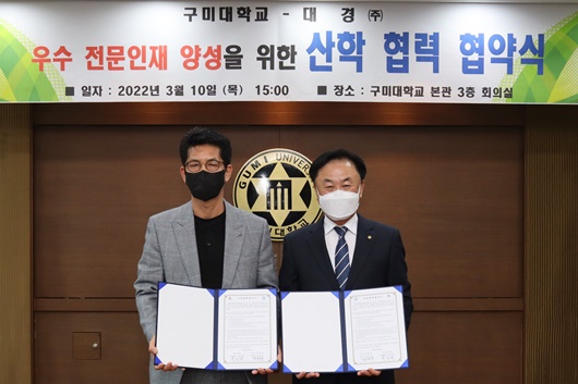 [구미=경북IT뉴스] 구미대학교(총장 정창주)는 10일 본관에서 대경(주)(대표이사 박진형)와 사출분야 전문인력 양성을 위한 산학협력 협약식을 체결했다.