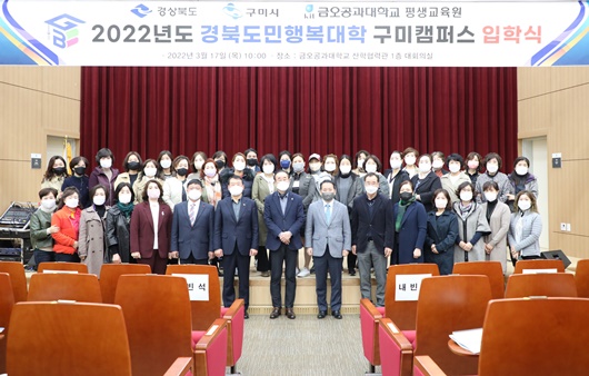 [구미=경북IT뉴스] 국립금오공과대학교(총장 곽호상)가 경상북도와 구미시가 함께 운영하는 ‘제2기 경북 도민행복대학 구미캠퍼스 입학식’을 개최했다.