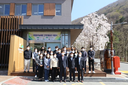 [칠곡=경북IT뉴스] 산림청 한국산림복지진흥원(원장 이창재) 소속기관인 국립칠곡숲체원(원장 배은숙) 은 휴식공간과 체험거리를 함께 제공하는 안내센터 개장식을 했다고 7일 밝혔다.