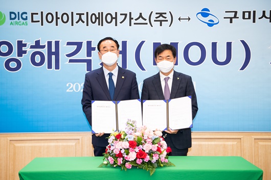 [구미=경북IT뉴스] 구미시(시장 장세용)는 지난 20일 시청에서 DIG 에어가스(주) 오규석 대표 및 임원들이 참석한 가운데 구미국가5산업단지 내 산업가스 제조공장 건설을 위한 투자양해각서(MOU)를 체결했다.