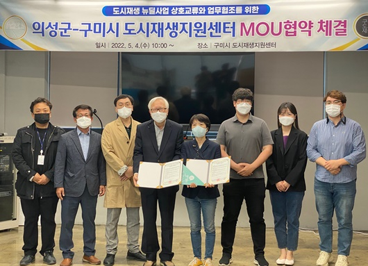 [구미=경북IT뉴스] 구미시 도시재생지원센터(센터장 김영민)는 성공적인 도시재생사업 추진을 위해 상호 존중과 신뢰를 바탕으로 지난 4일 의성군 도시재생지원센터(센터장 황종규)와 상생업무 협약을 체결했다.