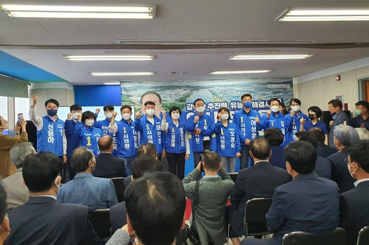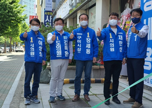 [구미=경북IT뉴스] 더불어민주당 기호1번 장세용 구미시장 후보가 14일 재선 도전을 위해 선거사무소 개소식을 가졌다. 이날 임미애 더불어민주당 경북도지사 후보, 장세호 경북도당위원장, 김현권 구미을 지역위원장, 김철호 전 구미갑 지역위원장 등이 참석했다.