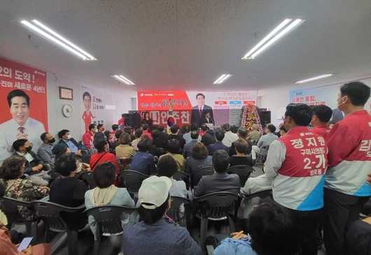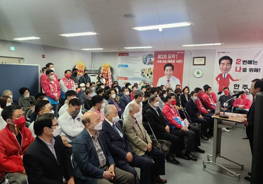 [구미=경북IT뉴스] 국민의 힘 구미시 자선거구 (인동.진미) 기호 2-나 안주찬 후보 선거사무소 개소식이 14일 열리면서, 3선 도전에 500여명의 많은 지지자들이 몰려 인산인해를 이루었다.