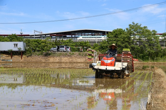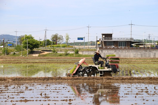 [안동=경북IT뉴스] 안동 풍산읍(막곡리) 한 들녁에 모내기 작업이 한창이다. 안동시의 주요 재배품종인 영호진미쌀과 백진주쌀은 5월 말까지, 일품쌀은 6월 중순까지 모내기가 마무리될 예정이다.