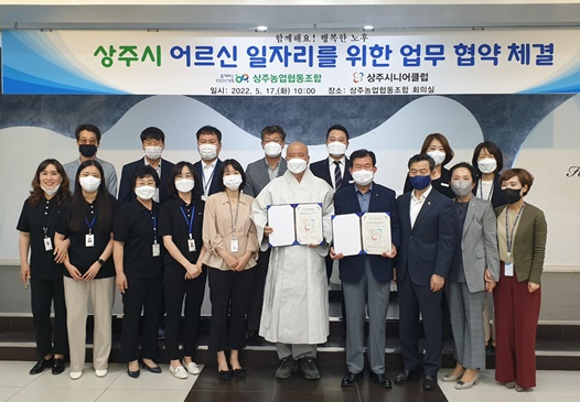 [상주=경북IT뉴스] 상주시니어클럽(관장 민성스님)은 지난 17일 상주농협(조합장 김도연)과 노인일자리 창출 및 제공을 위하여 상주농협 대회의실에서 업무협약을 체결했다.