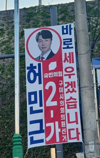 구미시의원 선거 2-가 허민근 후보, 지역 최초 ‘세로 현수막’