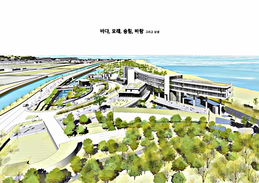 당선작은 ‘자연의 회복 : 소생(蘇生)_다시 살아나다’라는 주제로 바닷가의 멋진 전경과 모래사장, 송림 그리고 바닷바람을 만끽할 수 있도록 자연의 가치를 회복해 자연생태계와 인간이 소생하는 수련원을 그려 냈다.
