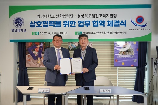 주원영 교육장은 “영천 지역 청소년들을 위해 많은 도움을 주실 영남대학교 산학협력단과 영천교육지원청 Wee센터에 감사드리고 본 협약이 영천 내 학생들의 즐거운 학교생활과 정서 발달에 큰 도움이 될 것으로 기대한다”고 말했다.