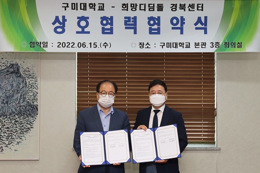 협약식에는 최성철 구미대 입학처장, 김홍기 희망디딤돌 경북센터장을 비롯 양측 관계자들이 참석했다.