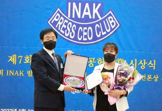 고정희 캐어뉴스 편집부장과 장지선 일요시사 기자, ‘최우수기자상’ 수상 INAK기자상은 언론발전에 기여한 인신협 회원사 소속 기자에게 수여하는 상으로서 최우수기자상과 우수기자상이 있으며 고정희 캐어뉴스 편집부장과 장지선 일요시사 기자가 공동으로 수상했다. 인신협은 현재 해외와 전국 17개 광역시도에 지부를 둔 130여 신문•방송사가 함께하고 있으며 협회 회원사 소속 10,000여명의 기자들이 전국 각 지역에서 언론인으로서의 사명을 다하고 있다.