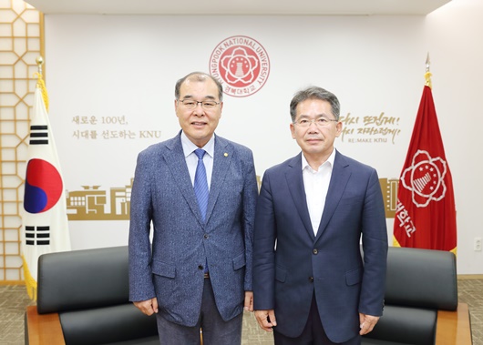 홍원화 총장(좌), 김진열 군수(우) | [군위=경북IT뉴스] 김진열 군위군수는 지난 5일 경북대학교 총장실에서 홍원화 경북대학교 총장과 만나 양 기관의 발전 및 상호협력 방안에 대해 논의했다.