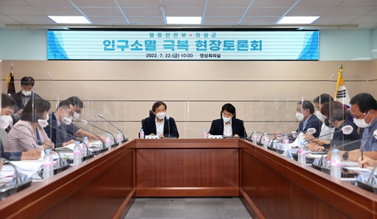 [의성=경북IT뉴스] 의성군은 지난 22일 행정안전부 소기홍 정책보좌관과 의성군 부군수를 비롯한 관련 부서장이 참석한 인구소멸 극복을 위한 현장토론회를 개최했다.