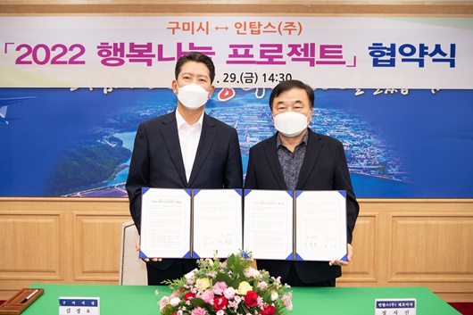 [구미=경북IT뉴스] 구미시(시장 김장호)에서는 지난 7월 29일 국제통상협력실에서 구미시 나눔문화 확산을 위해 인탑스(주)(대표이사 정사진)와 ‘2022 행복나눔 프로젝트’ 협약식을 가졌다.