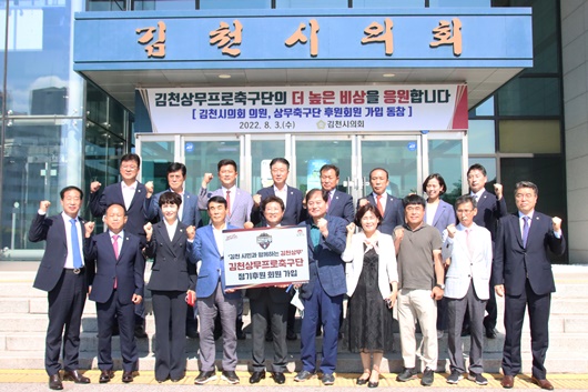 김천상무프로축구단(대표이사 배낙호)이 지난 3일 김천시의회의 ‘2022 시즌 김천상무 정기 후원회원’ 가입 행사를 진행했다.