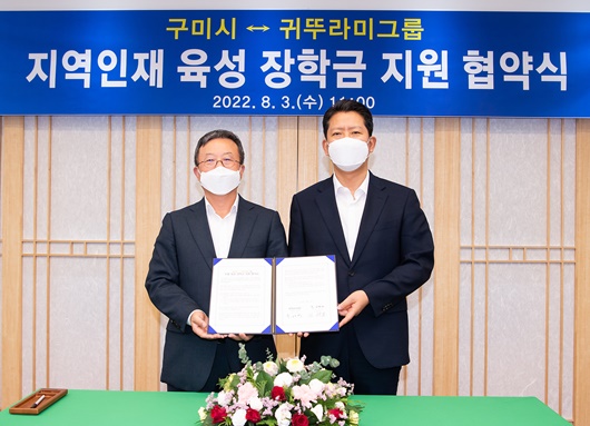 [구미=경북IT뉴스] 구미시(시장 김장호)에서는 지난 3일 국제통상협력실에서 구미시 인재육성을 위해 귀뚜라미그룹(회장 최진민)과 ‘지역인재 육성 장학금 지원’ 협약식을 가졌다.