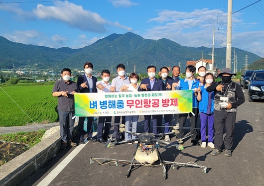 김재욱 칠곡군수는 “드론 공동방제로 농가 일손을 덜어주고 병해충 발생기에 적기 방제해 농가피해 최소화와 고품질 쌀 생산으로 농가소득 향상을 위한 지원에 최선을 다하겠다”고 밝혔다.