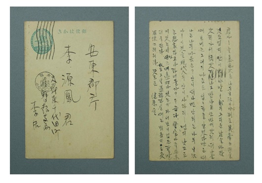첫 번째 엽서는 안동 군청에 근무한 친척 이원봉(李源鳳)에게 보낸 것이다. 소인 날짜는 1931년 11월 10일이다.