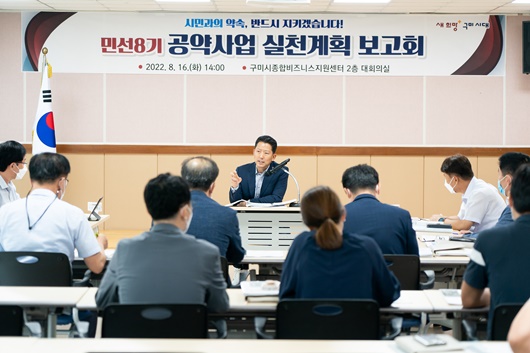 [구미=경북IT뉴스] 구미시(시장 김장호)는 지난 16일 구미시종합비즈니스센터 2층 대회의실에서 ‘민선8기 공약 실천보고회’를 개최했다.