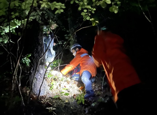 야간에 통고산 일대를 6km 수색해 안전히 인계