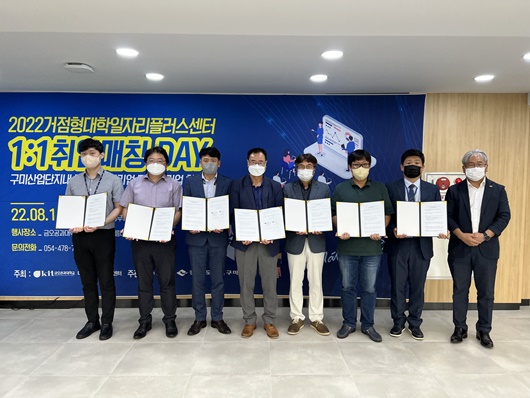 이어 거점형대학일자리플러스사업을 운영하고 있는 금오공대 학생성공처는 매칭 데이에 참여한 지역 강소기업 7개사와 업무협약을 체결해 지역 청년이 기업으로 원활하게 안착하도록 대학이 함께 노력하기로 했다.