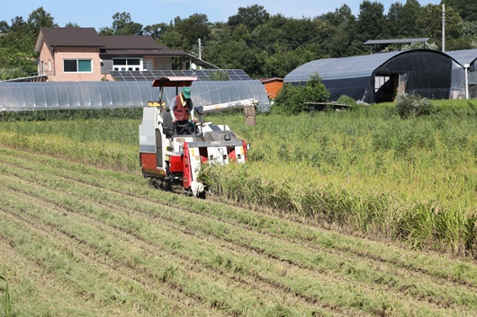 [안동=경북IT뉴스] 성큼 다가온 추석을 앞두고 첫 가을 햇살이 내리쬐는 안동시 풍천면 광덕리의 한 농가에서 벼수확이 한창이다. 극심한 폭염과 가뭄을 견뎌낸 농부의 땀방울이 결실을 맺는 순간이다.