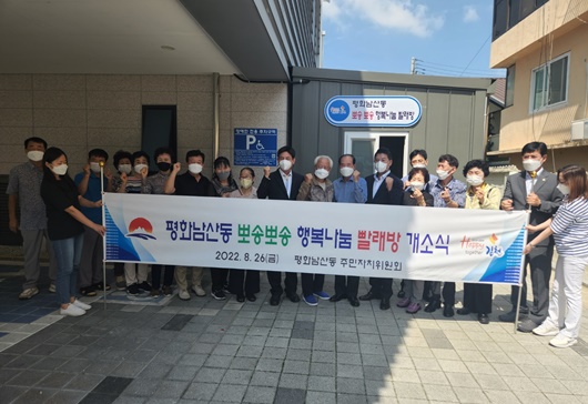 [김천=경북IT뉴스] 김천시 평화남산동은 지난 26일 행정복지센터 전정에서 주민자치위원회 위원 20여명이 참석한 가운데 ‘평화남산동 뽀송뽀송 행복나눔 빨래방’ 개소식을 열고 독거노인 등 취약계층을 위한 본격적인 빨래 서비스를 시작한다고 밝혔다.