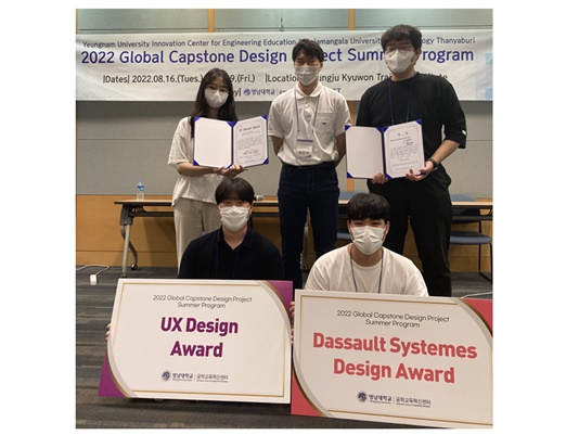 [구미=경북IT뉴스] 금오공대 기계시스템공학과 소속 학생들이 국제 캡스톤 디자인 대회 2022 미래 농업용 UX 모빌리티 디자인 프로그램에서 종합 2위에 해당하는 ‘UX 디자인 상’을 수상했다. 또한 본상 외에 ‘최우수 디자인상’도 함께 수상했다.